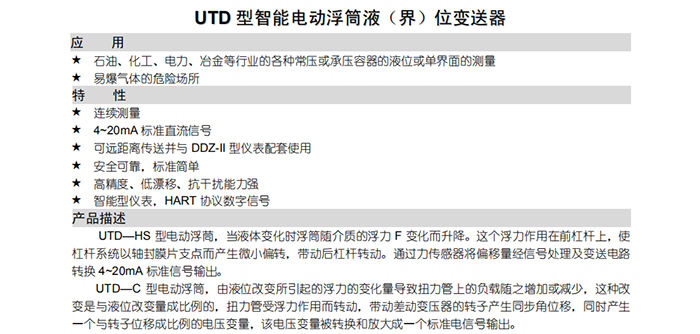 UTD型智能電動浮筒液(界)位變送器