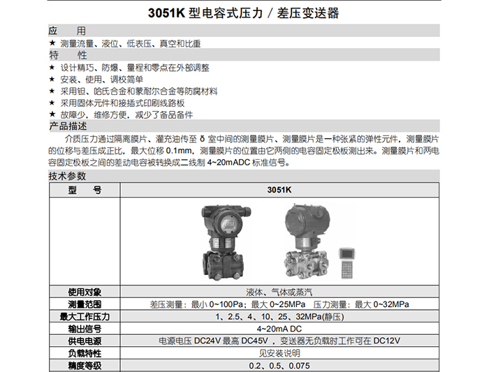 您現在的位置:首頁  > 產品展示  > 3051K型電容式壓力/差壓變送器